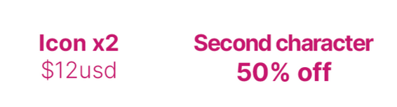 -Characters with complex designs may incur a surcharge (send md to inquire).